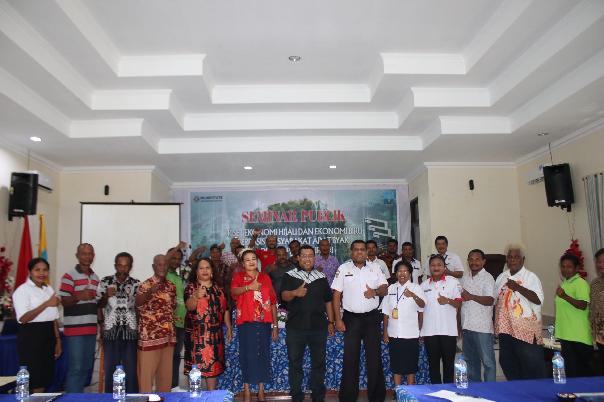 Seminar Publik Untuk Riset Ekonomi Hijau dan Ekonomi Biru di Kabupaten Supiori bersama dengan Pemerintah Daerah Supiori. Kegiatan ini di gelar di Sorendiweri, dengan mengundang Bupati Kab. Supiori diwakilkan oleh Assisten 1 Sekda Kabupaten, OPD terkait, perwakilan pelembagaan Adat di Kabupaten dan berbagai perwakilan masyarakat adat dari kampung-kampung.